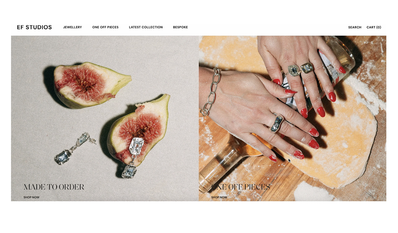 EF Studios focuses on recycled materials. They're landing page stands out the most amongst other pages on their website with it's close up imagery and close up proximity of product to natural items to emphasise their ethical standpoint.