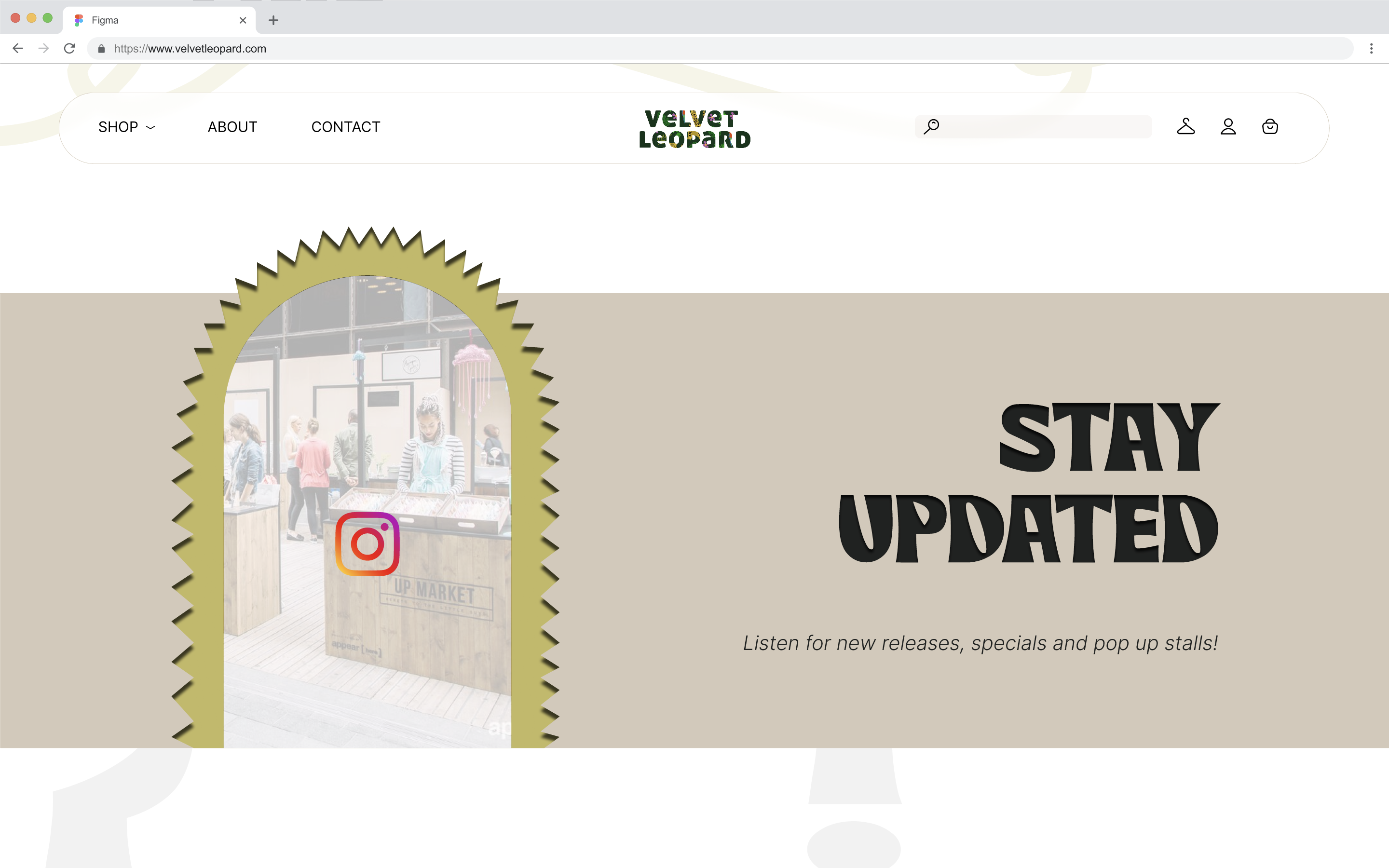 Generally I would play it safe and follow a more minimalist approach if the brand's colour scheme and products are as eccentric as Velvet Leopard’s, but I enjoyed learning the art of accent colours and playing around with contrasting shapes around the website to best match the brand identity. If the project timeline allowed, I would really like to do some more user testing on the final prototype to see how the users will respond, since the look of the rapid prototypes were more on the bare side and didn’t feature as much micro-interactions or images.